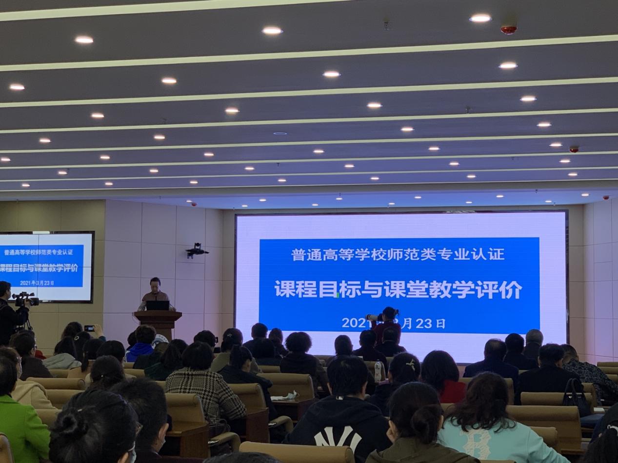 培训会上,于晓梅教授作了《课程目标与课堂教学评价》专题讲座。讲座围绕预认证专家的对bat365官网反馈意见、师范专业认证的基本理念以及4月20日教育部师范专业认证专家进校与课堂教学相关的重点工作,结合布鲁姆认知领域教育目标分类和具体的实例,对教学大纲中课程目标是怎么定的、什么是课程分目标和教学目标、课程目标怎样表述等方面对课程目标进行了详细的阐述,同时对学校课堂教学质量标准进行了解读和说明。