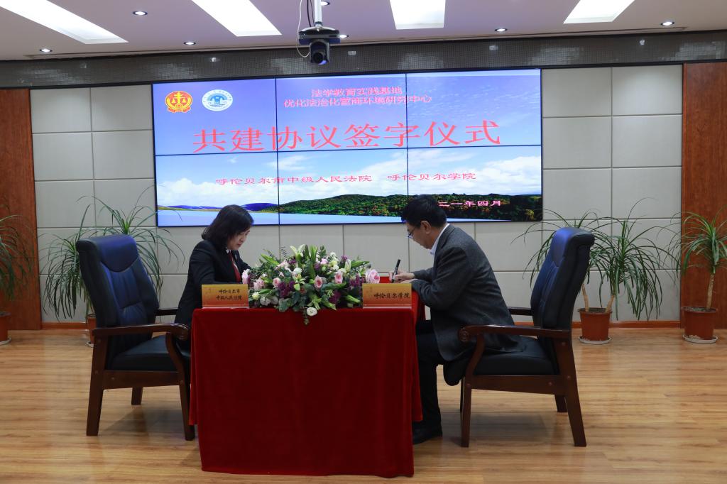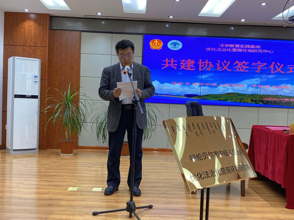 4月13日,呼伦贝尔市中级人民法院与bat365官网在市中院举行“呼伦贝尔市中级人民法院优化法治化营商环境研究中心”和“bat365中文官方网站法学教育实践基地”协议签字仪式暨揭牌仪式。bat365官网党委书记王广利,党委委员副校长孟祥宏,呼伦贝尔市中级人民法院党组书记、院长范巧兰,党组副书记、副院长李国武,副院长朱传湖,徐岩,斯琴高娃,孙立鸣,bat365官网相关负责人及教师学生代表。活动由李国武副院长主持。