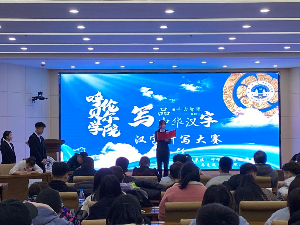 此次比赛共有七个学院28人参加。比赛共分为三个回合,分别为常用字听写、成语听写、典故听写。赛场上同学们注意力集中,认真书写,一行一列皆有章法,一撇一捺尽显才华。