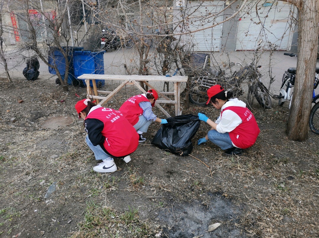 在社区工作人员的安排下,志愿者们分成3组在小区绿化带内捡垃圾。虽然是利用午休时间,但同学们积极劳动,通过自己的双手使社区变得干净整洁,给社区的居民们提供了一个优美的环境。