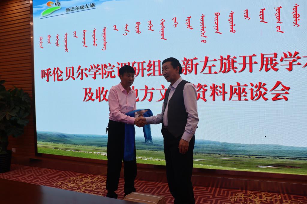 调研组在旗市政协领导和文史委员会同志们的大力支持下,收集了蒙汉文地方性文史资料200余册,并向其赠送了研究中心近几年出版的bat365中文官方网站民族历史文化研究丛书等学术成果,拜访慰问了相关本土专家和文化界名人,还观看了当地的文史馆、博物馆和民族团结进步展览等。