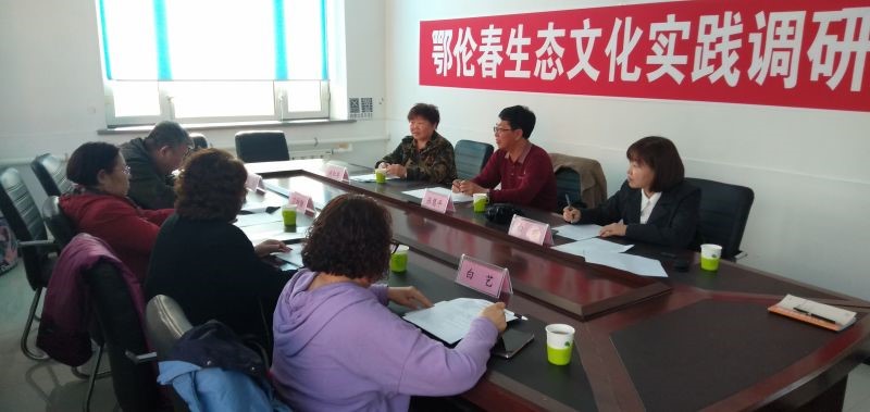 调研组按照课题计划要求,在鄂伦春旗民族研究会的大力支持下,前往鄂伦春旗文化馆、鄂伦春旗林业局、旗环保局、旗发改委、旗民委、乌鲁布铁猎民村、讷尔克气猎民村、多布库尔猎民村、东大桥岩画区等处进行了走访、考察,与旗民族研究会学者、专家进行了学术交流,采访了满古梅、吴灵芝、内淑梅等老一代鄂伦春族非物质文化遗产传承人,取得了充分的一手资料,同时收集了《鄂伦春研究》和鄂伦春族非遗方面的图书资料,为该项课题的顺利完成奠定了坚实基础。