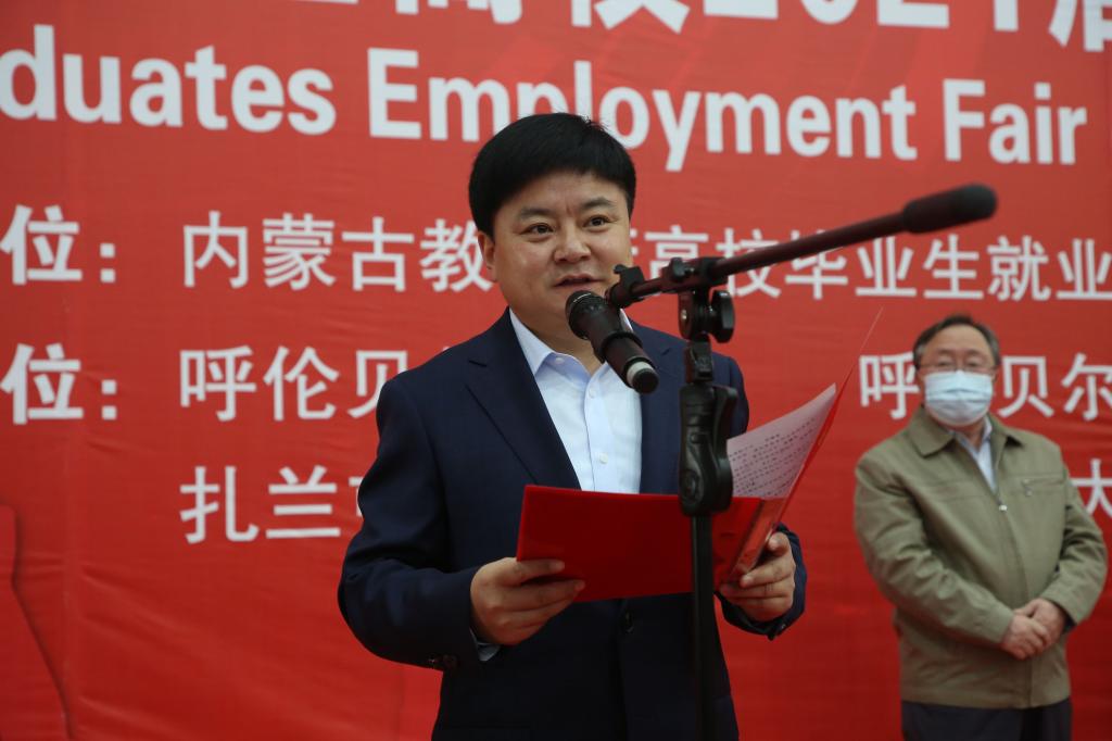 呼伦贝尔市政府副市长白海林宣布就业洽谈会开始。