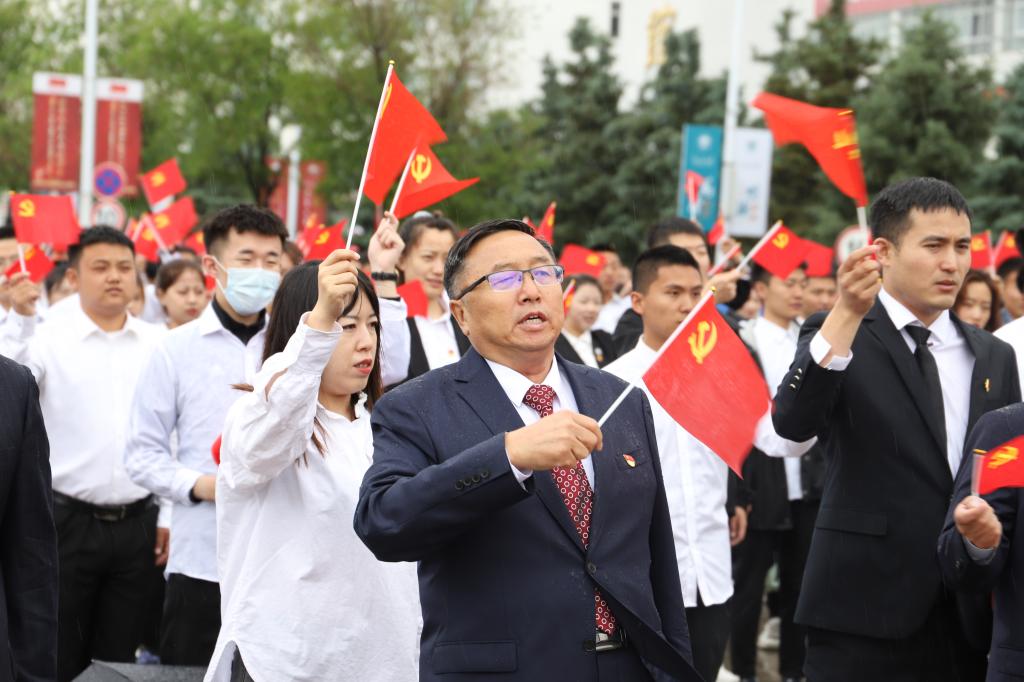 为庆祝中国共产党成立100周年,回顾党的光辉历程,讴歌党的丰功伟绩,6月18日,bat365官网举行庆祝建党100周年千名党员集体宣誓仪式。校党委书记王广利领誓并讲话,党委副书记、校长李文阁主持仪式,党委副书记张国栋,党委委员、副校长孟祥宏,党委委员、纪委书记、自治区监察委员会驻bat365中文官方网站监察专员岳勇,党委委员、组织部部长吴静怡,党委委员、宣传部部长刘秀兰,党委委员、统战部部长张树福,以及获得“光荣在党50年”纪念章的老党员代表,教师党员、学生党员、离退休党员代表共2380人参加宣誓仪式。