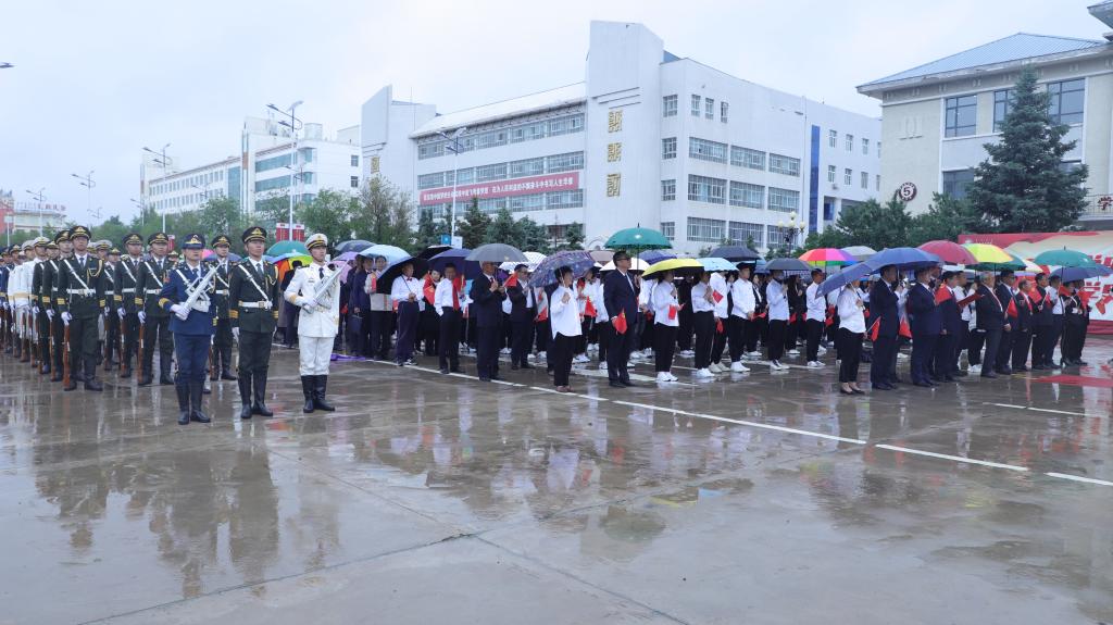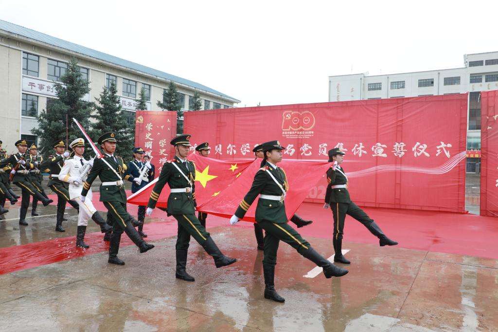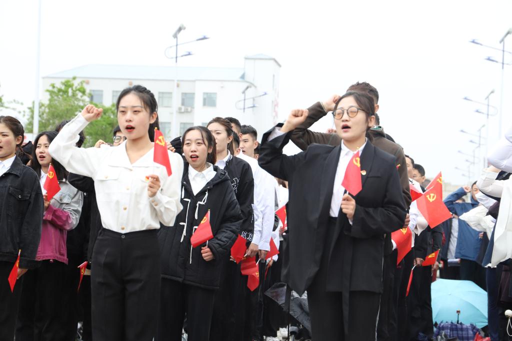 宣誓仪式在庄严的国歌声中拉开序幕,国旗护卫队迈着矫健的步伐,护送鲜艳的五星红旗入场,师生整齐列队,齐唱国歌,行注目礼。党委书记王广利带领全体师生党员面向鲜艳的党旗,握紧右拳,郑重宣誓。诚挚的誓言,表达了他们身为党员对党忠诚、永不叛党的坚定承诺,更表达了全心全意为人民服务、为实现中华民族伟大复兴贡献力量的责任和担当。
