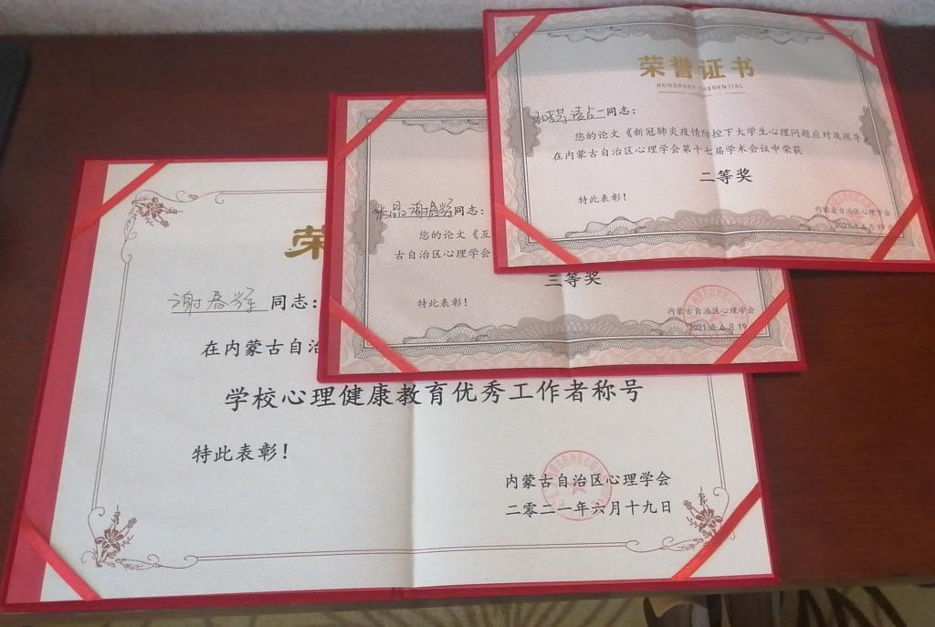 6月18-20日,第十七届心理学学术会议在内蒙古民族大学召开。bat365官网积极参加先进集体、个人和论文表彰活动。经过专家组评审,bat365官网心理健康教育与咨询中心被评为“内蒙古心理健康教育工作先进单位”;谢春辉老师荣获“内蒙古心理健康教育优秀工作者”;王晓芳、凌占一老师的论文《新冠肺炎疫情防控下大学生心理问题应对及疏导》荣获优秀论文二等奖;张晶、谢春辉老师的论文《互联网时代高校心理健康教育管理问题的思考》荣获优秀论文三等奖。