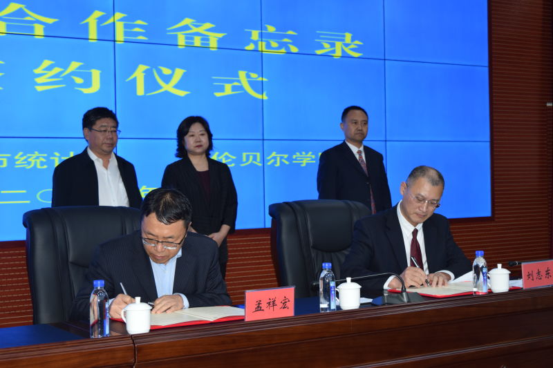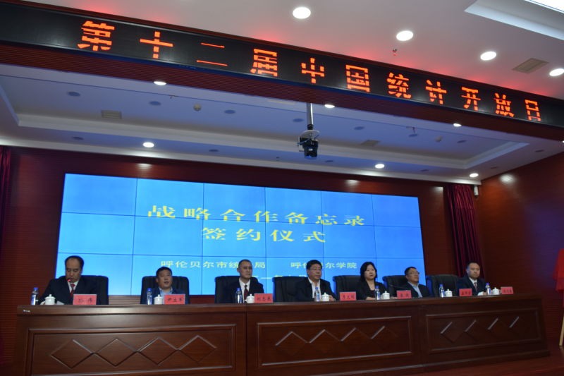 9月18日下午,bat365官网与呼伦贝尔市统计局合作备忘录签订仪式暨第十二届“中国统计开放日”活动在河西新区政务综合楼F东区1层会议室举行。bat365官网党委副书记、校长李文阁,党委委员、副校长孟祥宏,呼伦贝尔市统计局局长崔健,副局长刘志东,副局长王元奎及bat365官网教务处处长尹立军,数学与统计学院领导班子及教师代表出席此次会议。会议由呼伦贝尔市统计局四级调研员孙伟主持。