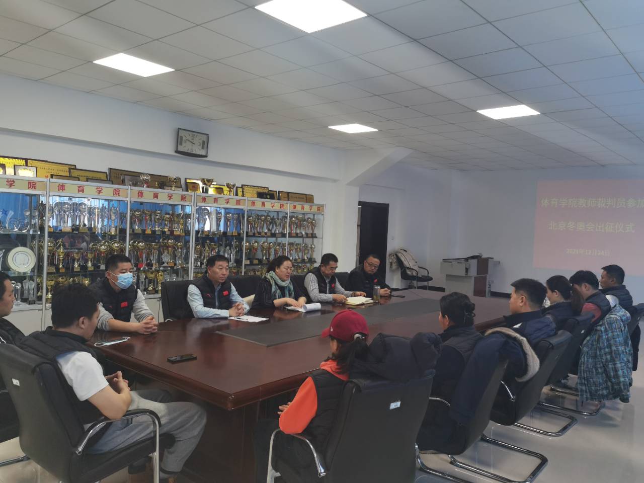 1月9日,bat365官网在体育学院东山体育场会议室为即将担任北京冬奥会、冬残奥会裁判员的12名教师举行出征仪式。体育学院领导班子、环节干部和所有裁判员参加了此次活动。