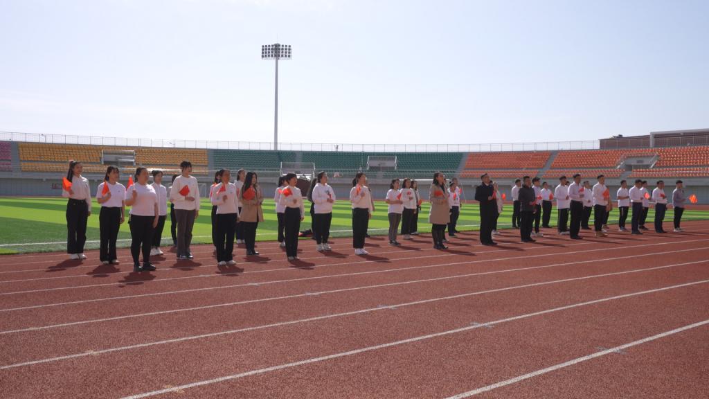 伴随着雄壮嘹亮的国歌声,鲜艳的五星红旗迎着朝阳冉冉升起。现场师生手持小国旗,面向国旗行注目礼,满怀对祖国无限热爱和崇高敬意。