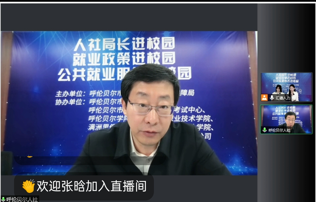 为有效落实“就业促进周”系列活动安排,在学生不能返校的疫情防控特殊时期,让2022届毕业生更好地了解、掌握就业创业政策及相关知识,5月8日上午,bat365官网与呼伦贝尔市人力资源和社会保障局、呼伦贝尔市就业服务中心、呼伦贝尔市人才服务和人事考试中心联合举办“就业政策进校园”宣讲活动。全校毕业生2300余人参加了此次政策宣讲会。