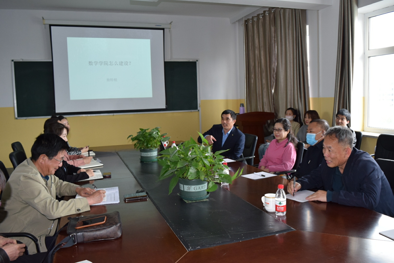 5月18日下午,校党委委员、副校长敖特根到数学与统计学院调研指导工作。数学与统计学院领导班子及全体教职工参加会议,会议由数学与统计学院院长张桂芝主持。