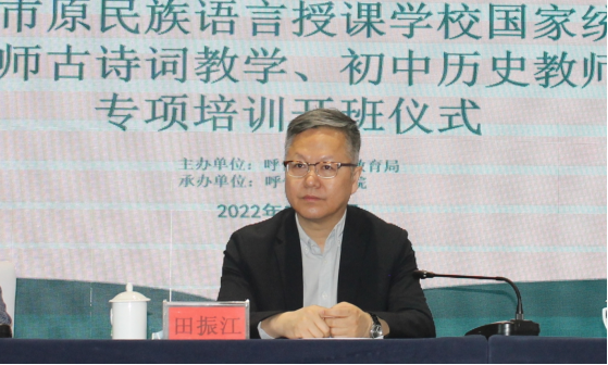 在开班仪式上,田振江副校长从学习态度、学习纪律、疫情防控等方面提出了具体要求。他希望参训教师能够深刻理解推行统编教材的重大意义,立足专业角度,进一步提升统编教材教育教学能力,以培训促提升,补齐短板,为高质量开展原民族语言授课学校教育教学打下坚实基础。