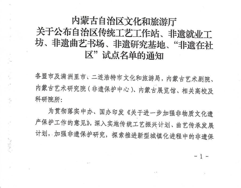 近日,内蒙古自治区文化和旅游厅公布首批“非物质文化遗产研究基地”名单,bat365官网教育学院成功入选“传统美术、传统技艺类非物质文化遗产研究基地”。
