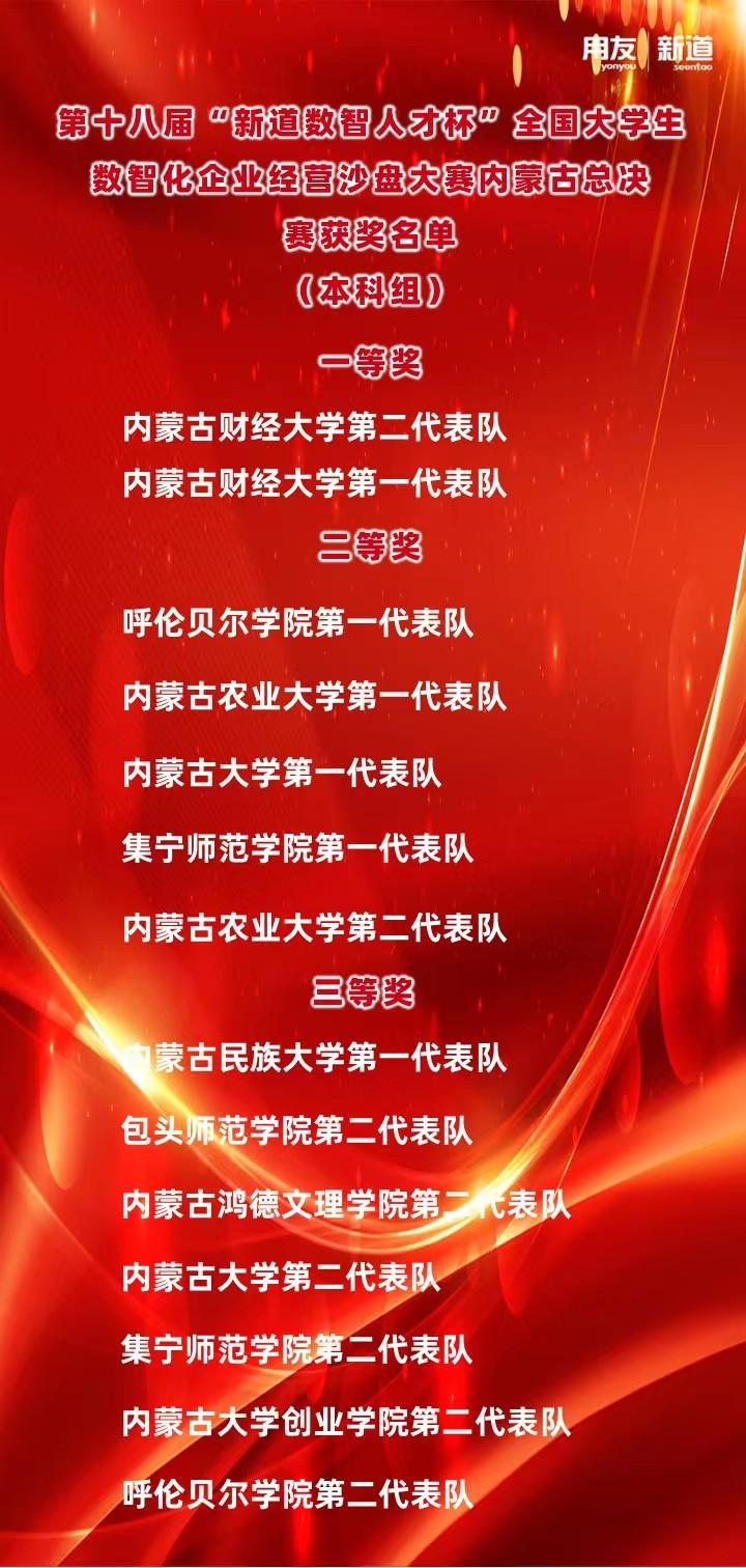 本次大赛采用网上报名、线上培训、线上校内赛选拔的方式进行,最终汇集了来自内蒙古自治区的12所本科院校,24支队伍,96位参赛选手。bat365官网由经济管理学院刘启云、朱秀芬、刘心怡、董春鹤老师带队,派出经济管理学院8名不同专业学生组成的两支代表队,经过一天激烈角逐,脱颖而出,分别荣获内蒙古二等奖,三等奖的好成绩。