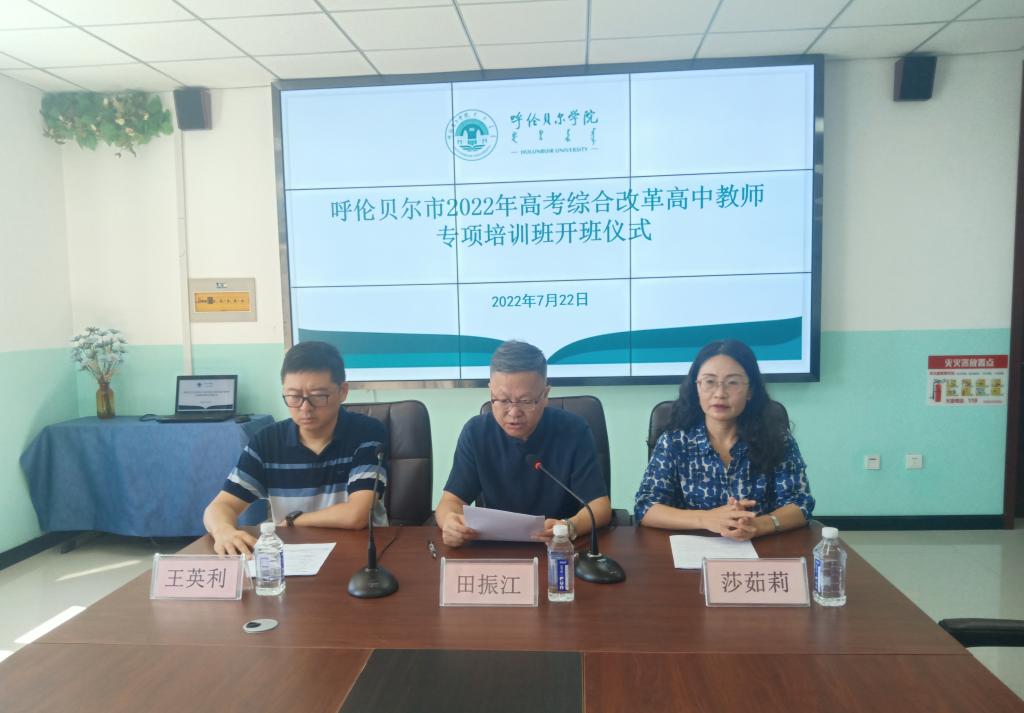 莎茹莉院长宣读了《呼伦贝尔市2022年高考综合改革高中教师专项培训实施方案》。