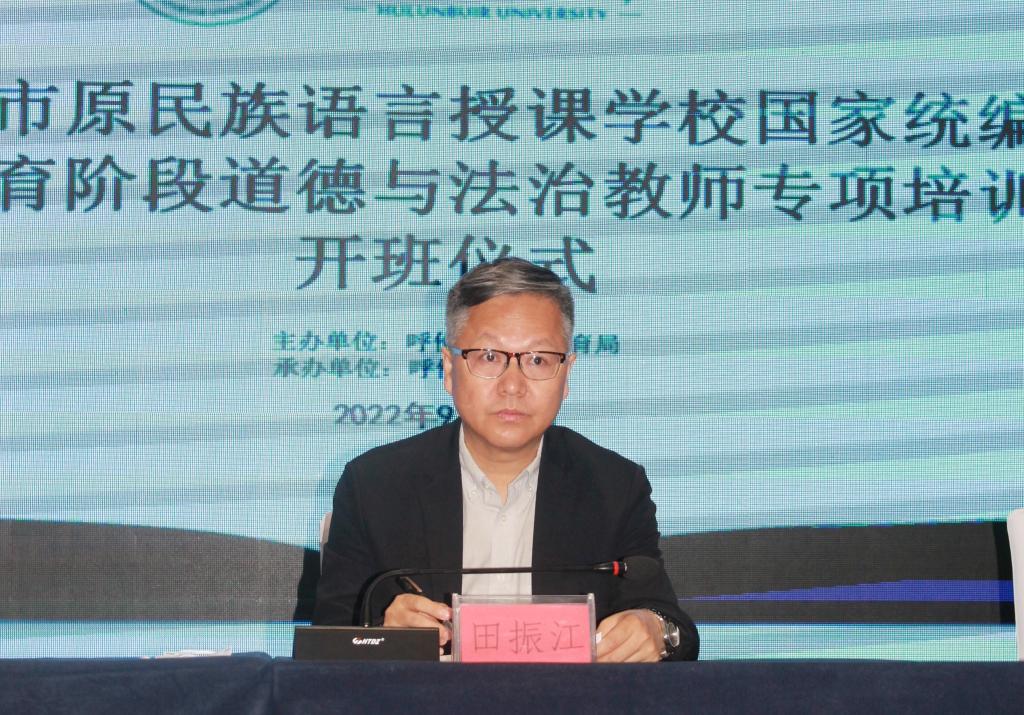 9月17日上午,呼伦贝尔市国家统编教材义务教育阶段道德与法治教师专项培训班在bat365官网正式开班。校党委委员、副校长田振江,继续教育学院党总支书记何平出席开班仪式。呼伦贝尔市义务教育阶段道德与法治教师,授课专家以及bat365官网继续教育学院相关工作人员共84人参加了开班仪式。开班仪式由bat365官网继续教育学院培训科副主任刘秀双主持。