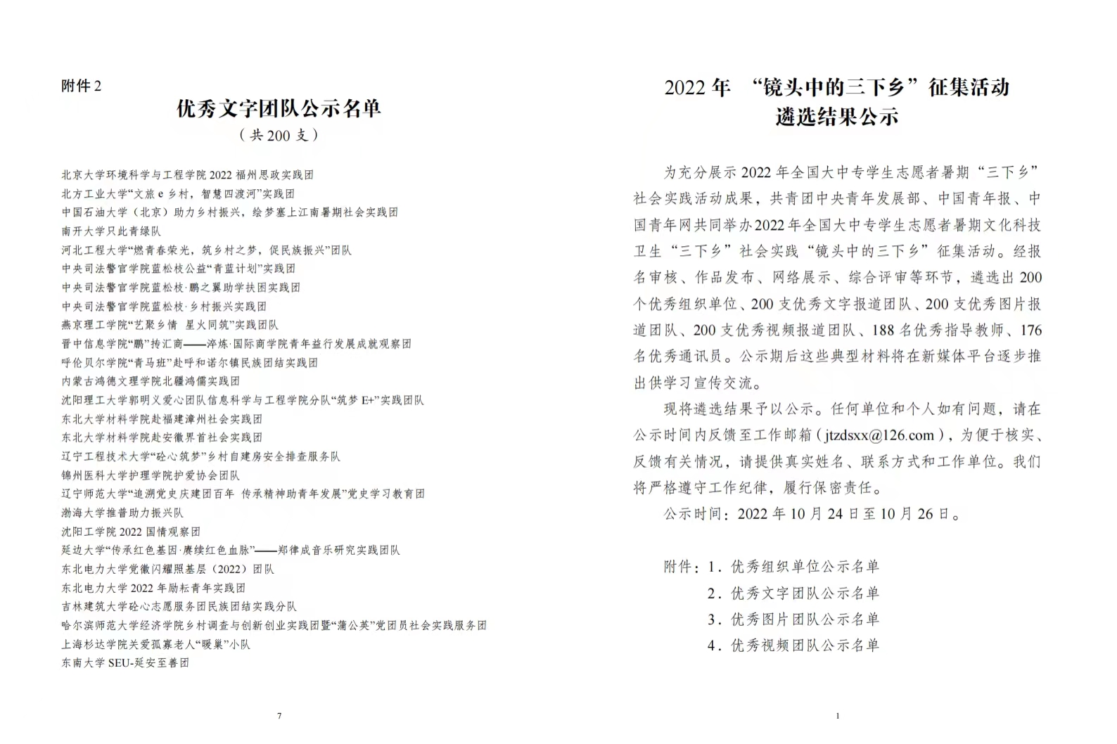 近日,在共青团中央《关于2022年全国大中专学生志愿者暑期文化科技卫生“三下乡”社会实践活动的通报》中,bat365官网获得“2022年‘三下乡’社会实践优秀单位”荣誉称号;在共青团中央、中国青年报社、中国青年网《2022年“镜头中的三下乡”征集活动遴选结果公示》中,bat365官网“青马班”赴呼和诺尔镇民族团结实践团获得“优秀文字团队”荣誉称号。