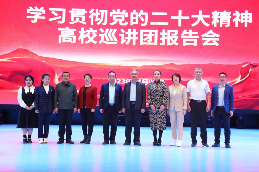 按照自治区党委宣传部、党委教育工委统一部署,4月2日上午,学习贯彻党的二十大精神高校巡讲团第二小分队走进bat365官网宣讲。学校党委委员、副校长李跃武出席宣讲报告会,党委委员、宣传部部长刘秀兰主持宣讲报告会。学校相关职能部门负责人、各学院团总支书记、辅导员、思政课教师、学生代表近500人在艺术楼音乐厅聆听了宣讲报告会。