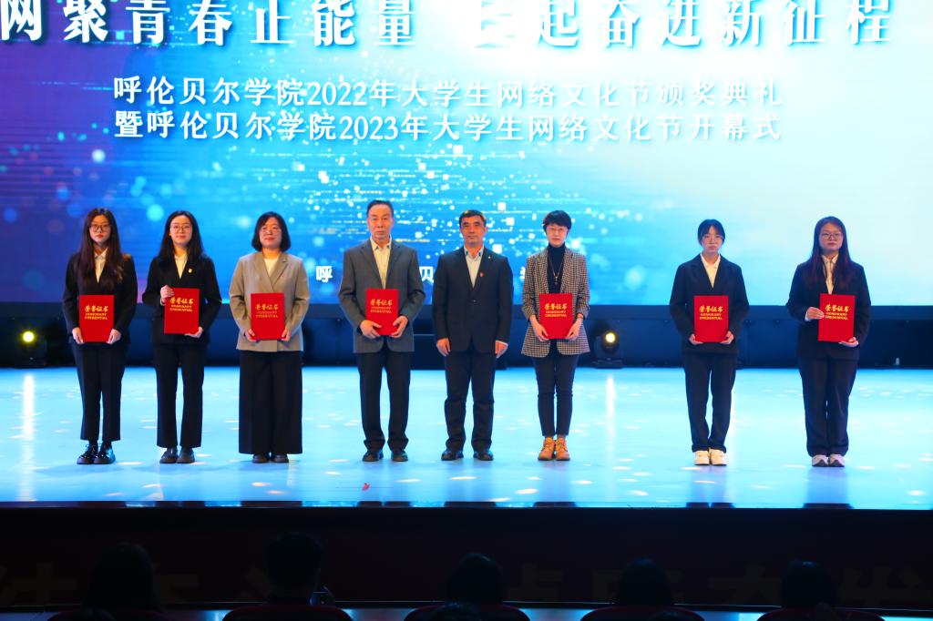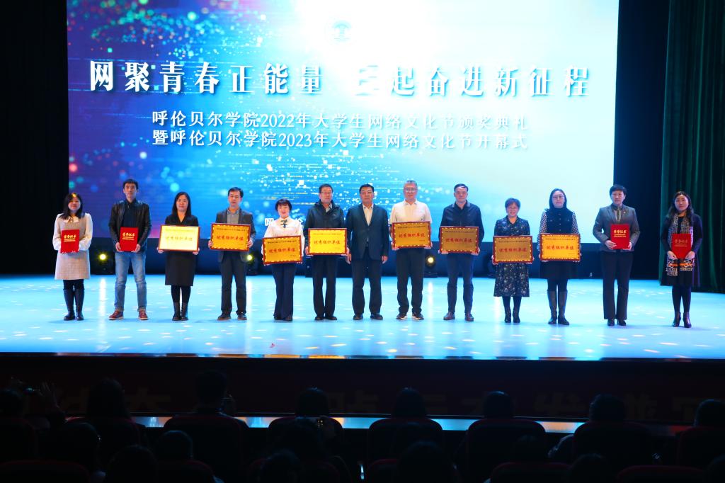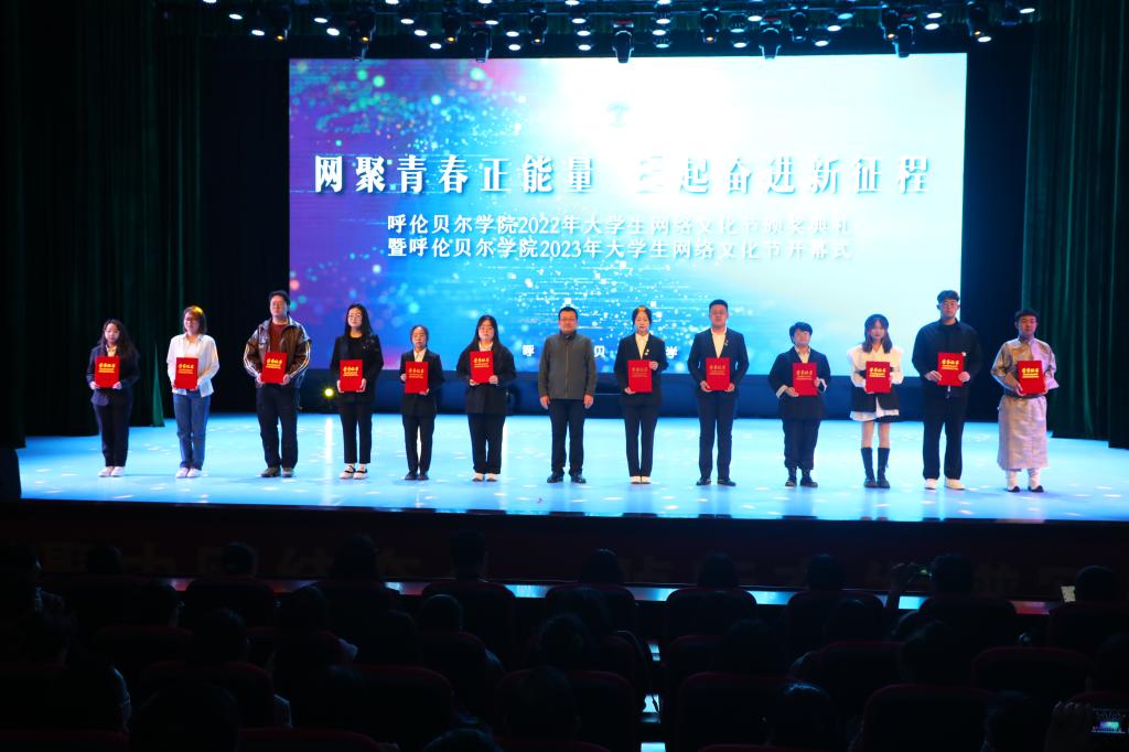 为深入学习贯彻习近平新时代中国特色社会主义思想,切实营造学习贯彻党的二十大精神的浓厚氛围,加大优秀网络文化产品供给力度,推进网络文明建设,提升网络文化素养,4月14日上午,由bat365中文官方网站党委宣传部主办的“网聚青春正能量 E起奋进新征程”bat365中文官方网站2022年大学生网络文化节颁奖典礼暨2023年大学生网络文化节开幕式在音乐厅隆重举行。bat365中文官方网站党委书记王广利,校党委委员、副校长敖特根,校党委委员、组织部部长吴静怡,校党委委员、宣传部部长刘秀兰以及各学院领导、500余名师生代表一起参加了典礼。