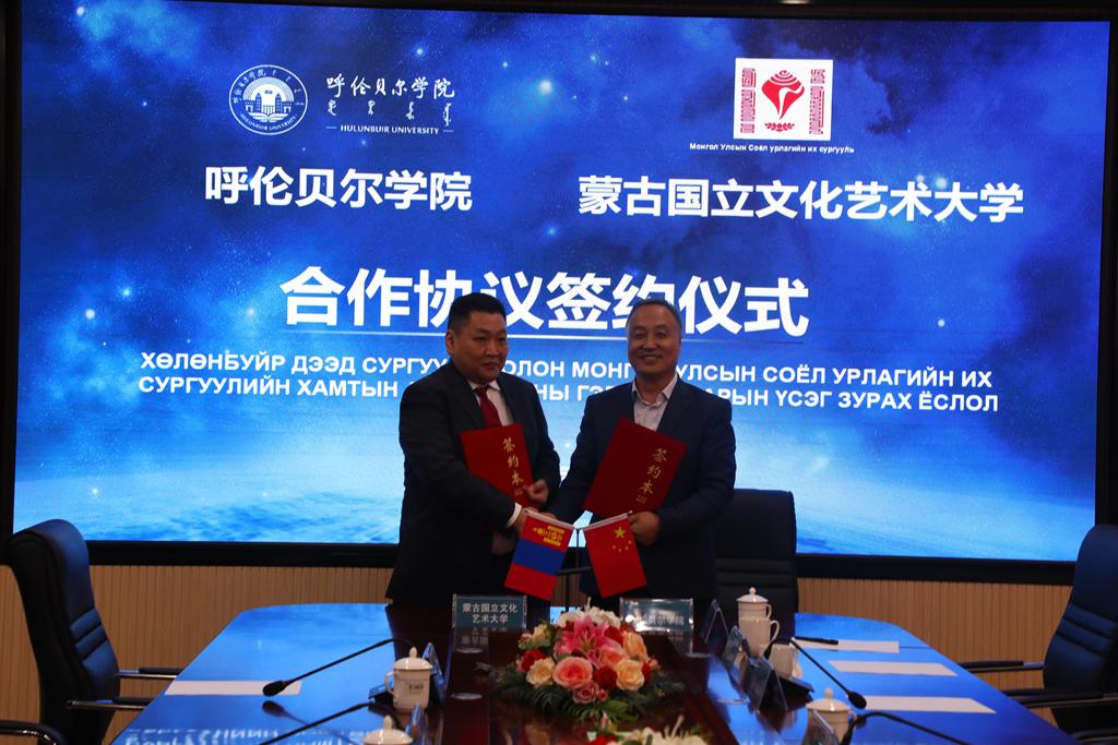 4月18日下午,bat365官网与蒙古国立文化艺术大学举行合作协议签约仪式。李跃武副校长和吉·额尔和木特古斯副校长分别代表bat365中文官方网站和蒙古国立文化艺术大学签署了《中俄蒙高校关于创建“文化艺术中心”的合作协议》。根据合作协议,bat365中文官方网站、蒙古国立文化艺术大学以及俄罗斯四所高校将共同建立“中俄蒙文化艺术中心”,通过联合编写科学出版物,举办大学生文化艺术节、文化交流艺术展,开设讲座等方式,结合各方的优势资源,促进中俄蒙三国在教育、文化和艺术等领域的交流与合作。