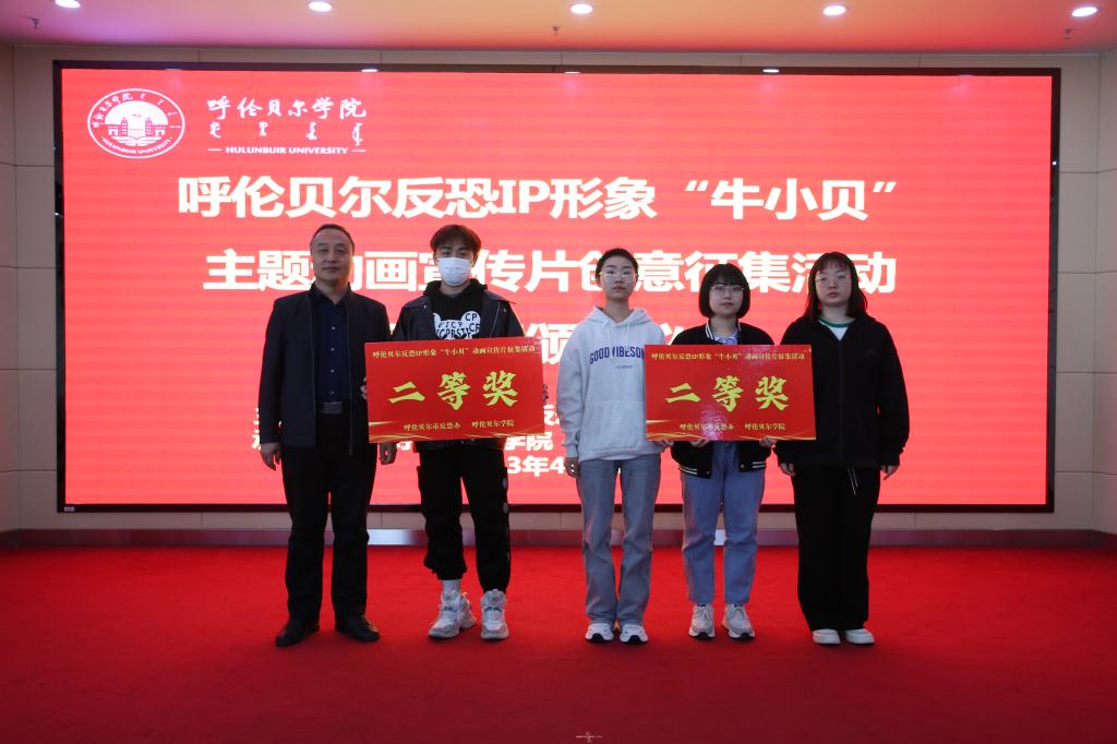 为了充分调动bat365官网师生参与反恐平安校园活动积极性,共同打造平安和谐校园。2022年底,bat365官网与呼伦贝尔市公安局反恐怖和特巡警支队联合开展呼伦贝尔反恐IP形象“牛小贝”主题动画宣传片创意征集活动,历经五个月已经落下帷幕。4月14日,双方在学校崇文楼A201会议室召开现场评选暨颁奖典礼。bat365中文官方网站党委委员、副校长李跃武、校园安全管理处处长毛永强及学校相关部门人员、呼伦贝尔市反恐办副主任、市公安局反恐怖和特巡警支队政委张军、副支队长郭若辉、大队长王宇婷、反恐办公室工作人员及一百余名学生参加本次活动。