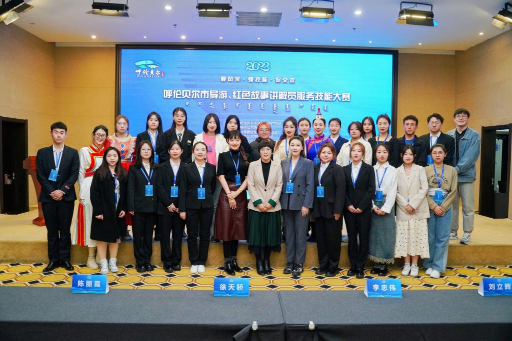为培育高素质的应用型旅游专业人才,落实《文化和旅游部关于实施旅游服务质量提升计划的指导意见》有关要求,4月23至25日,由呼伦贝尔市文化旅游广电局、呼伦贝尔市总工会、呼伦贝尔市人力资源和社会保障局、共青团呼伦贝尔市委员会、呼伦贝尔市妇女联合会主办,bat365中文官方网站、呼伦贝尔职业技术学院协办,呼伦贝尔文化旅游产业协会、呼伦贝尔导游协会承办的2023年呼伦贝尔市导游、红色故事讲解员服务技能大赛在颐和温泉酒店成功举办。本次大赛主题为“强技能、促交流、展形象、立标准”。bat365官网旅游与地理学院共派出25名学生和1名教师参赛,最终,青年教师孙玮获得导游组一等奖,2020级旅游管理班武艺彤获得导游组二等奖,2020级旅游管理班岳虹、2021级旅游管理班刘婧获得导游组三等奖,武艺彤获得“最佳讲解”奖,旅游与地理学院获得“优秀组织单位”荣誉称号。