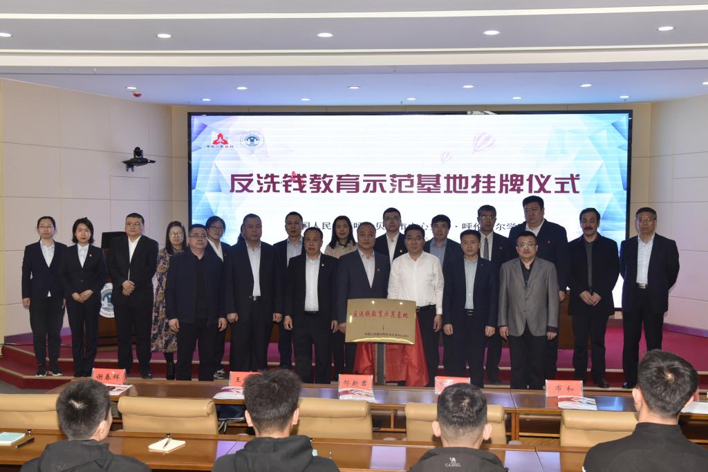随后,李跃武副校长和王晓峰行长共同为呼伦贝尔市反洗钱教育示范基地挂牌。