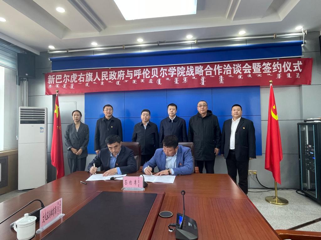 党委委员、副校长敖特根代表学校与新巴尔虎右旗常务副旗长田风林签署战略合作协议。