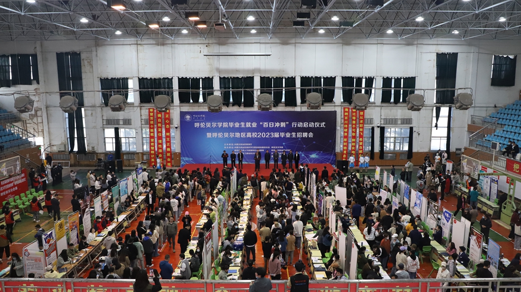 5月27日,由内蒙古自治区教育厅主办,bat365官网联合内蒙古自治区高校学生就业创业服务中心、呼伦贝尔市人力资源和社会保障局、呼伦贝尔职业技术学院、呼伦贝尔市工商业联合会、扎兰屯职业学院、满洲里俄语职业学院举办的bat365中文官方网站毕业生就业“百日冲刺”行动启动仪式暨呼伦贝尔地区高校2023届毕业生招聘会在校体育馆拉开帷幕。