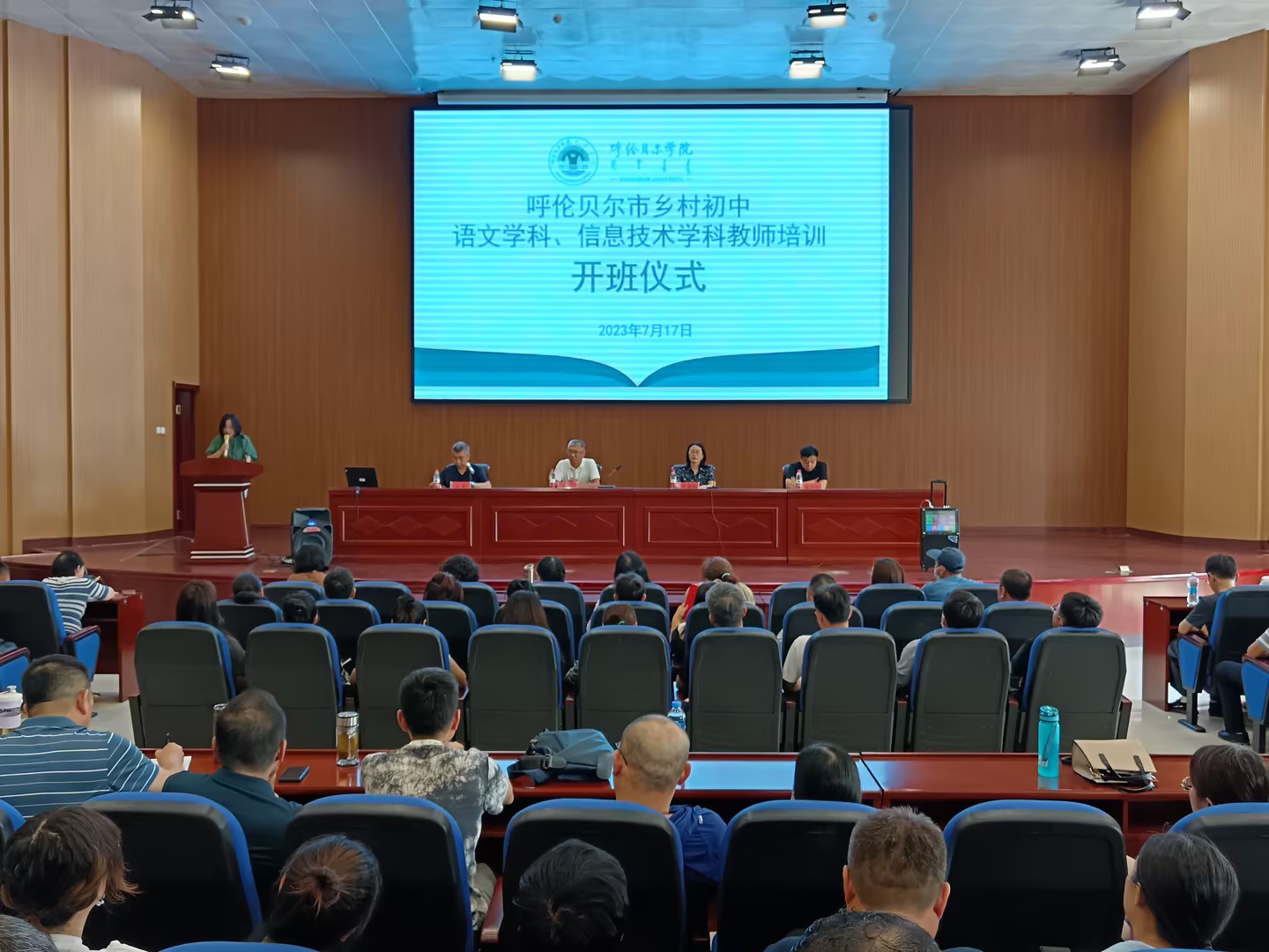 为落实《呼伦贝尔市乡村教师培训工作的方案》的要求,结合《bat365中文官方网站初、高中乡村教师全员培训方案》工作安排,7月17日上午,2023年呼伦贝尔市乡村初中语文学科、信息技术学科教师培训开班仪式在bat365官网图书馆四楼报告厅举行。
