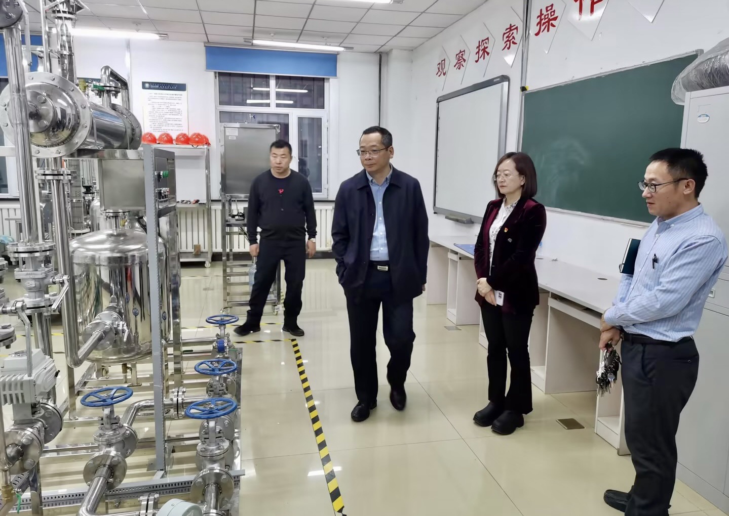 在矿业与化学化工学院,张玉柱实地走访了实验室、药品库等实践教学场所,深入了解了实验室安全管理等工作,对学院在专业建设、人才培养等方面所做的工作给予了肯定。他强调,一要深入推进专业结构优化调整,培养地区特色鲜明的应用型人才;二要转变就业观念,对接就业政策,提高就业质量;三要积极开展调研工作,创新思路举措,把调研成果转化为解决问题的具体成效;四要借助外力,积极参加专业评估,以评促建,凝练专业特色。