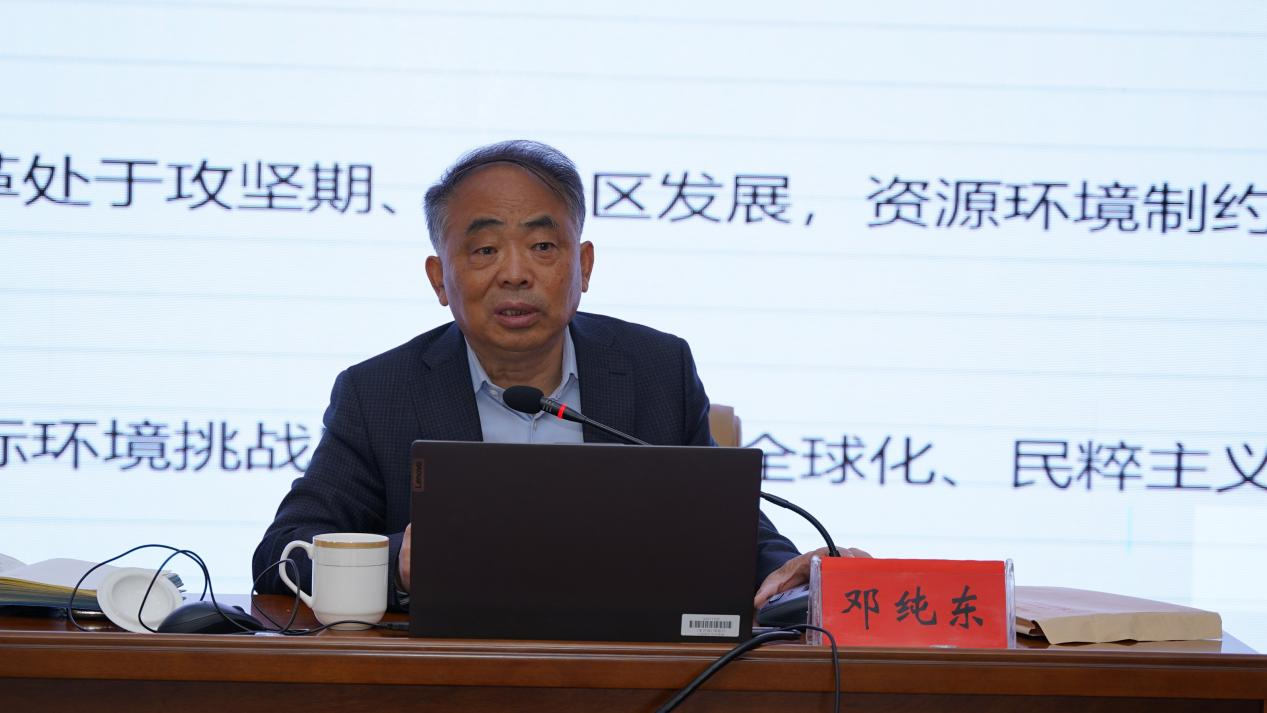 10月27日的学习中,邀请中国社会科学院马克思主义研究院原党委书记、院长邓纯东研究员作题为《学思想强党性重实践建新功——在主题教育中学深悟透用好习近平新时代中国特色社会主义思想》专题辅导讲座。当天下午,在前期学习的基础上,围绕对师生情况、学校实际的调查和分析,以如何运用调查研究方法推动本职工作为主题,教育学院党总支书记海江、数理学院党总支书记杨巧智、工学院党总支书记王旭、研究生处党总支书记苏杰、学生工作处处长郝新君、招生就业处处长赵小花、校园安全管理处处长王利国等7位同志对阶段性调研成果进行了研讨交流。