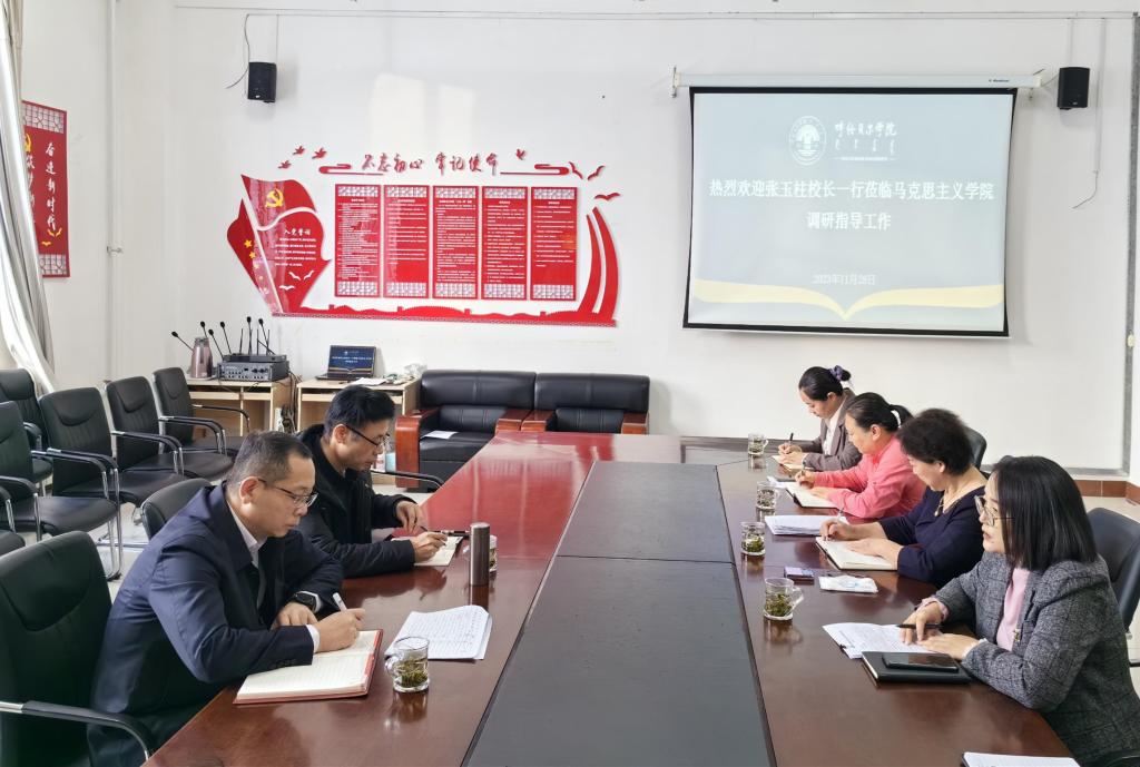在马克思主义学院,张玉柱在听取汇报后指出,马院教师要深化提升教师的理论研究能力,带着智慧走进课堂,切实提高思政课教师授课质量;要进一步加强师资队伍建设,为学院发展储备人才;要充分利用大中小学思政课一体化建设平台,主动发力,多措并举发挥育人合力。