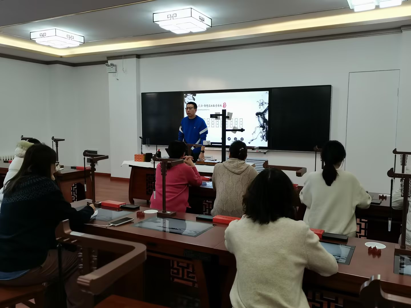 为满足师范专业化发展需要,加强师范生综合技能训练,提升师范生教育教学综合能力和素质,结合bat365官网师范教育专业办学优势,积极推进师范生教学平台建设。bat365官网将崇文楼A401改造成了师范生技能训练中心,并于2023年11月底建成。智慧实体空间部分由教学技能训练室、书法教室等各种功能室组成。其中,教学技能训练室5间、软硬笔智慧书法实训室1间。