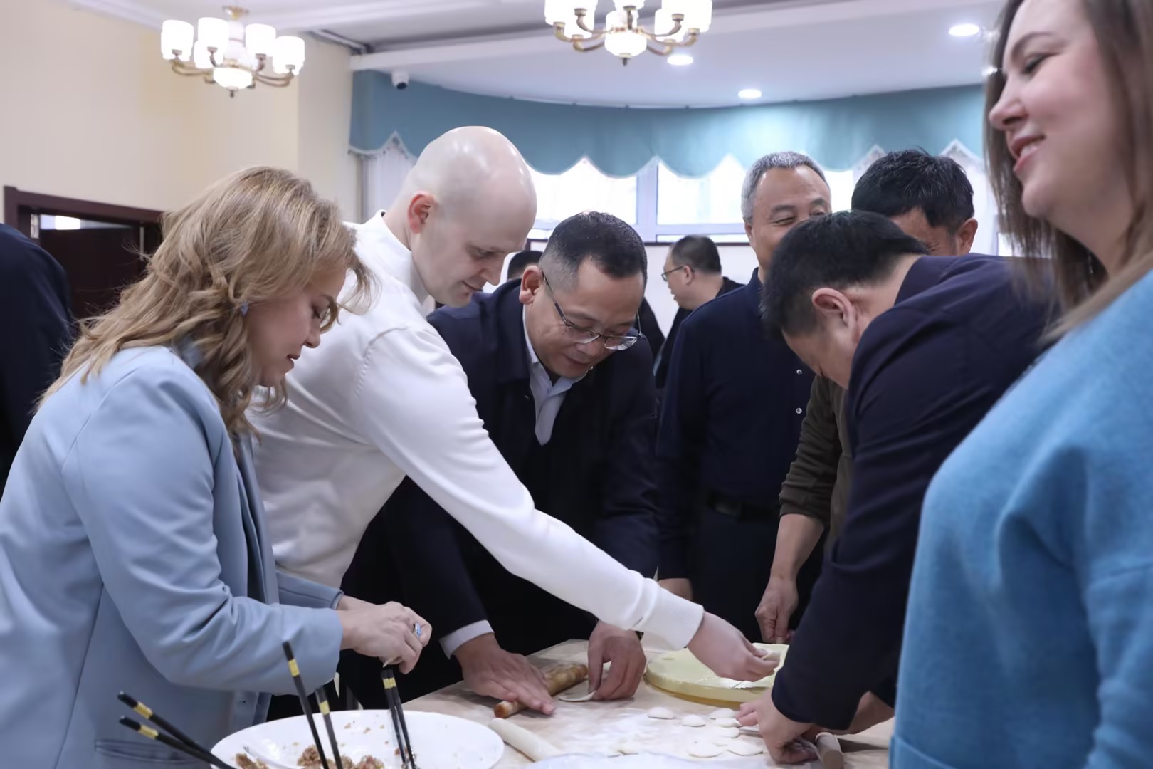 活动最后,与会领导、老师和同学们一起包饺子,共同品尝中华美食。留学生们也纷纷表示,充分感受到了学校的关心和关怀,拉近了彼此间的距离,对中华文化有了更加深入的了解。整场联欢会也在热情洋溢、欢乐祥和的气氛中结束!