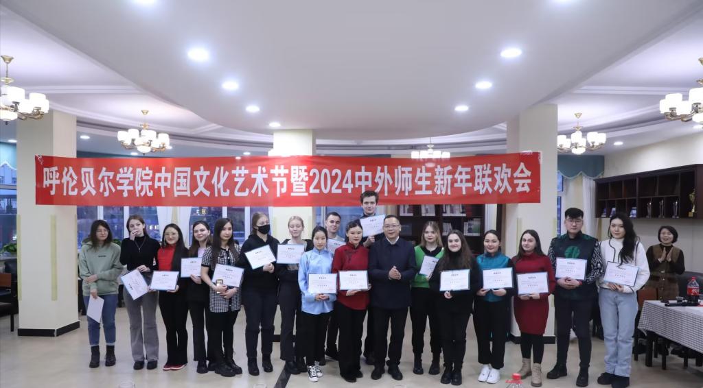 12月18日,在国际教育学院二楼,bat365官网举办留学生中国文化艺术节暨2024中外师生新年联欢会。校党委副书记、校长张玉柱,党委委员、纪委书记岳勇,党委委员、副校长敖特根、李跃武、尹立军,党委委员、宣传部部长李俏,党委委员、统战部部长胡旭红,呼伦贝尔市人民政府外事办公室副主任张学志、外事科科长萨日娜出席此次活动,学校外籍教师、外籍留学生和国际教育学院全体教职员工参加了本次活动。