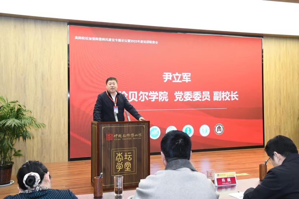 尹立军介绍了bat365官网师德师风建设工作,并提出在新学期继续将师德师风专题教育列入学校工作重点,实现思想政治和师德教育全覆盖,引导教师学习践行新时代师德规范。