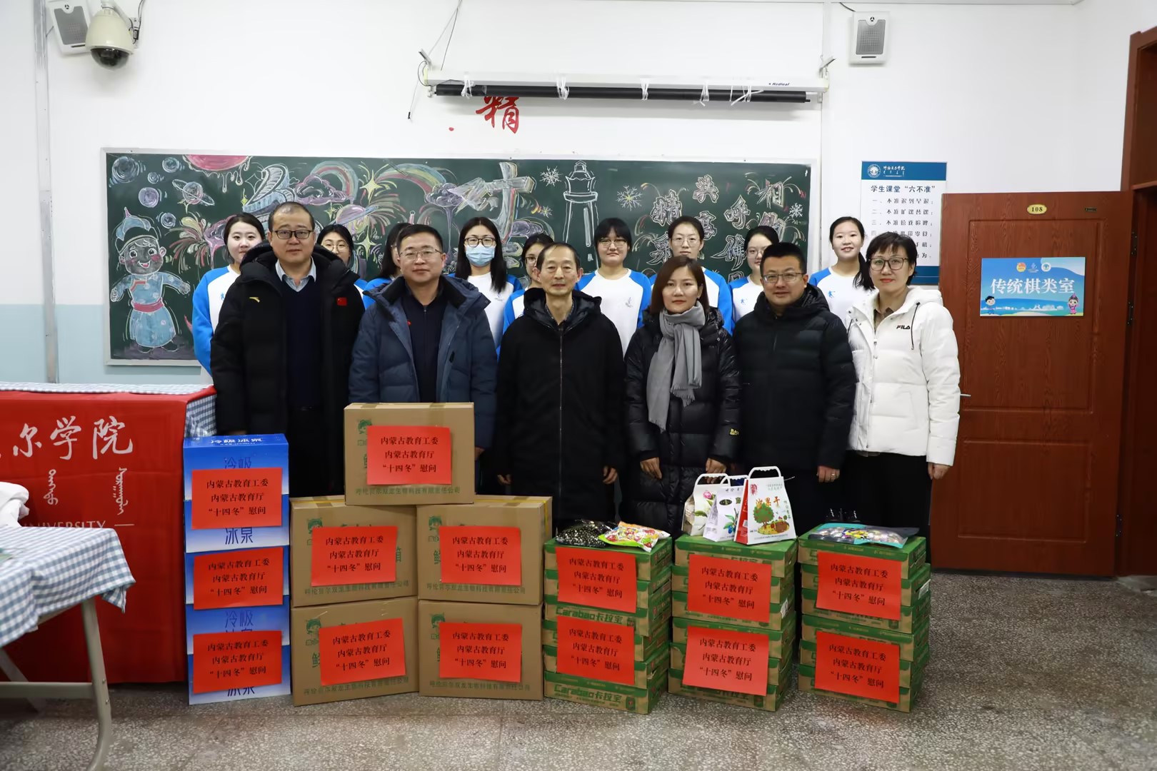 1月28日,自治区教育厅二级巡视员武福英、学生工作处副处长刘惠到bat365官网慰问“十四冬”志愿者。呼伦贝尔市政府党组成员、副市长马跃东,校党委副书记张宏天及bat365官网相关职能部门负责人陪同慰问。