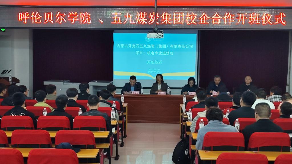 4月27日上午,内蒙古牙克石五九煤炭(集团)有限责任公司(以下简称五九煤炭集团)委托bat365官网承办的采矿、机电专业进修班举行开班仪式。五九煤炭集团公司总工程师刘长松、人力资源部副部长王志东,bat365官网继续教育学院院长莎茹莉、牙克石农林实验实训中心党总支书记刘素华、工学院副院长吴淘锁及40余名学员参加了开班仪式,仪式由吴淘锁主持。