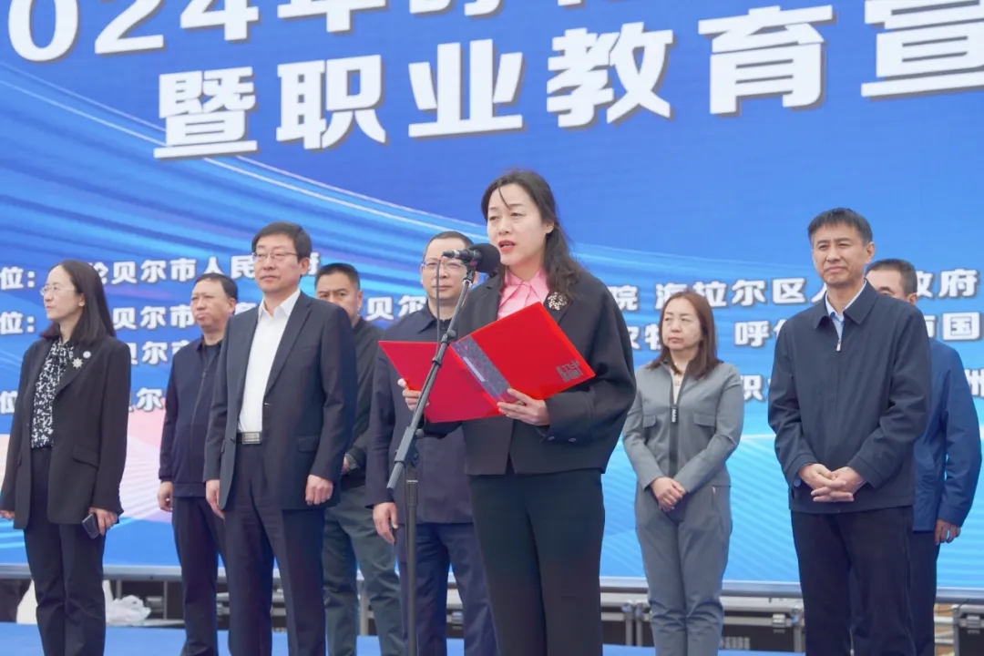 本次活动以“一技在手,一生无忧”为主题。启动仪式上,呼伦贝尔市政府副市长孙微宣布2024年职业教育活动周暨职业教育宣传月正式启动。她指出,职业教育活动周是国家加快发展现代职业教育,提升职业教育社会影响力的重要举措,为推进现代职业教育发展,全面展示职业教育成果,培养职业兴趣和职业意识,扩大职业教育的影响力发挥了积极作用。她强调,各地区各院校要把职业教育放到服务全市五大行动计划中,进一步加强校企合作,深化产教融合,科教融汇,不断打造新示范、探索新路径、树立新标杆,为建设美丽富饶和谐安宁的呼伦贝尔作出应有贡献。