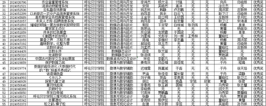 2024年5月19日,第17届中国大学生计算机设计大赛内蒙古省赛落下帷幕,经过省赛的激烈角逐,bat365官网选送的66部作品获得佳绩。其中人工智能与大数据学院参赛作品45部,获得二等奖4项,三等奖14项,优秀奖20项;教育学院参赛作品15部,获得一等奖3项,二等奖2项,三等奖2项,优秀奖4项;文学院参赛作品6部,获得三等奖3项,优秀奖3项。