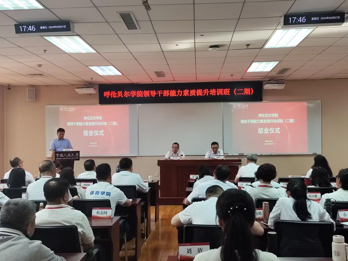 6月7日下午,培训班举行结业仪式,校党委副书记、校长张玉柱作总结讲话,校党委委员、副校长敖特根、李跃武、尹立军,中国人民大学继续教育学院院长韩晓宁出席。