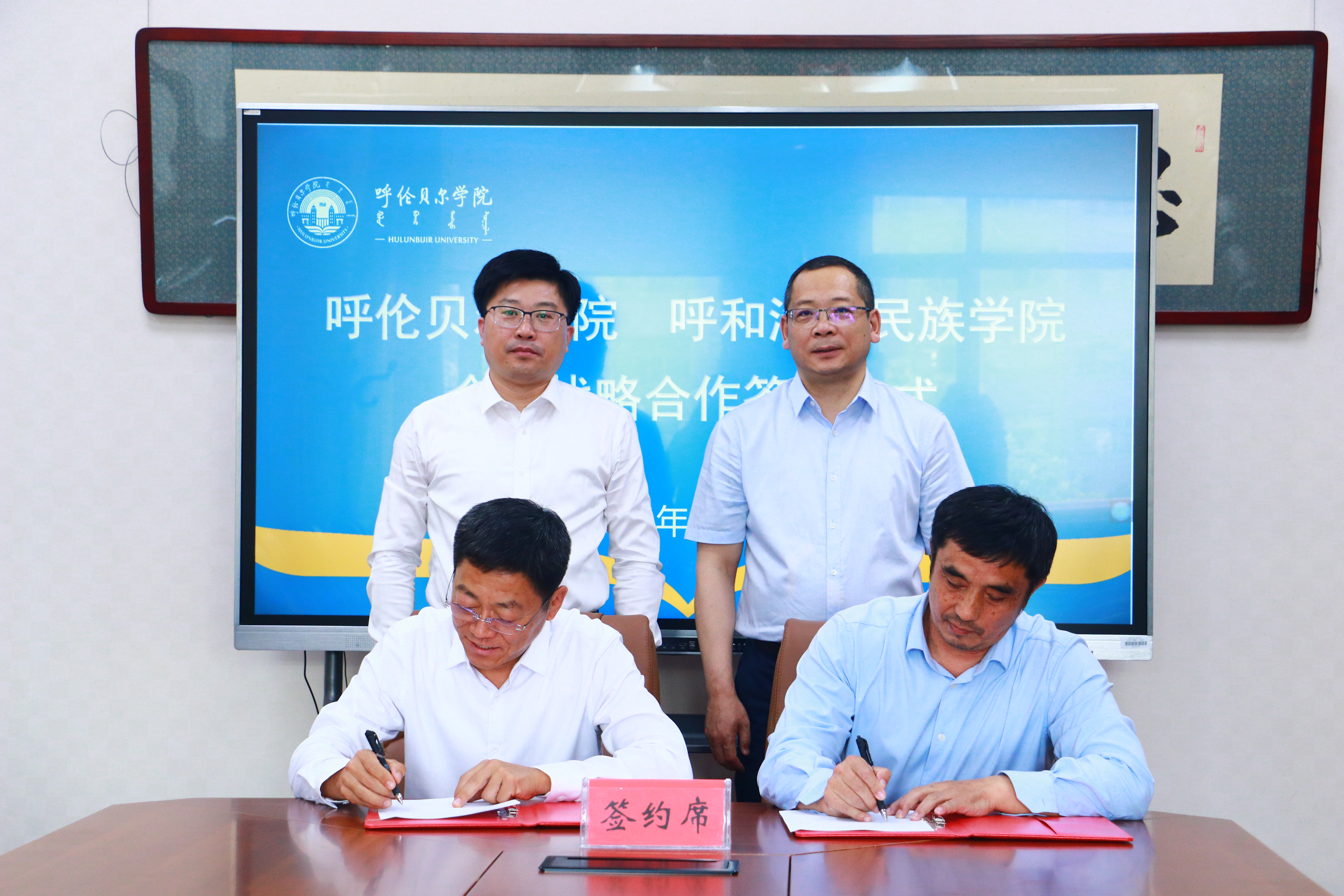 6月14日下午,bat365中文官方网站与呼和浩特民族学院全面战略合作签约仪式在逸夫楼319会议室举行。bat365中文官方网站党委副书记、校长张玉柱,校党委委员、副校长敖特根,呼和浩特民族学院党委副书记、校长韩伟新,校党委委员、副校长高喜天出席签约仪式,两校相关部门负责人参加了签约仪式,仪式由敖特根主持。