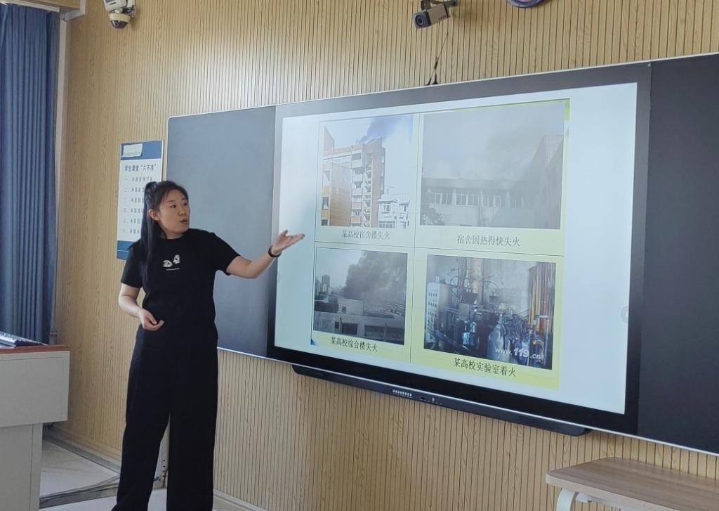 班会上,陈艺文通过生活中实际发生的案例故事,重点讲解了如何防溺水、防火,遇到危险该如何自救和逃生等校园安全内容。