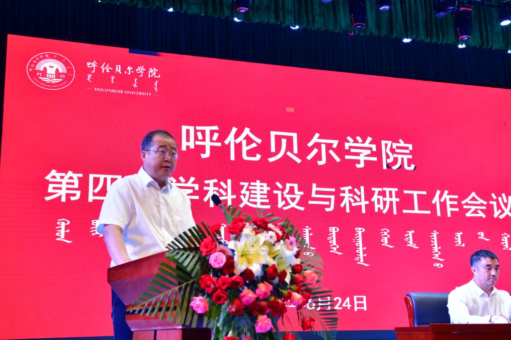 此次会议是学校全面贯彻落实党的二十大、全国教育大会和科技创新大会精神,深入推进硕士点建设、晋位升级和内涵式发展关键时期召开的一次重要会议,对于全校进一步统一思想,筑牢学科建设在内涵建设中的龙头地位和科研工作在人才培养中的支撑地位,精准把握学科建设和科研工作的目标任务,全面提升人才培养质量,建设特色鲜明的高水平应用型大学具有十分重要的意义。会议设置大会报告、表彰先进、交流发言等环节,会议由敖特根主持。