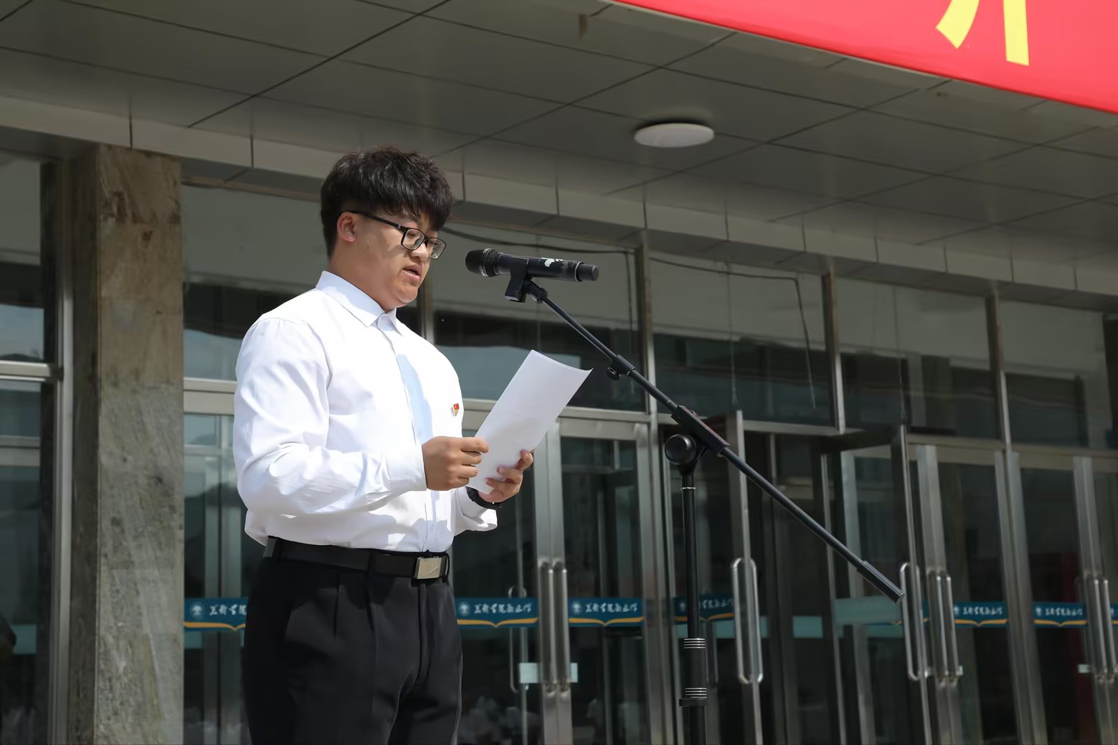郝晓宽宣读预备党员名单。231名预备党员和参加仪式的全体党员面向党旗庄严宣誓。