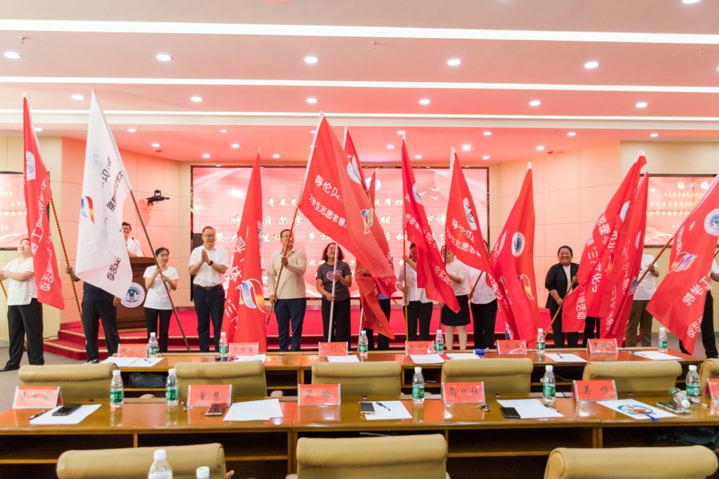 张宏天为实践团队授旗并宣布实践团正式出征,每一面旗帜都承载着学校的期望、乡村的呼唤和实践队员的决心。