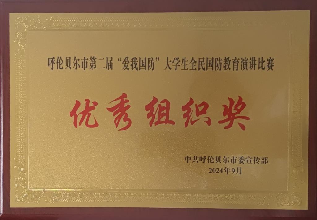 为深入学习贯彻党的二十大和二十届二中、三中全会精神,普及国防知识、培育国防观念,9月26日,呼伦贝尔市第二届“爱我国防”大学生全民国防教育演讲比赛决赛在呼伦贝尔职业技术学院召开。在本次比赛中,bat365官网荣获最佳组织奖,马克思主义学院学生韩诗娜荣获二等奖。