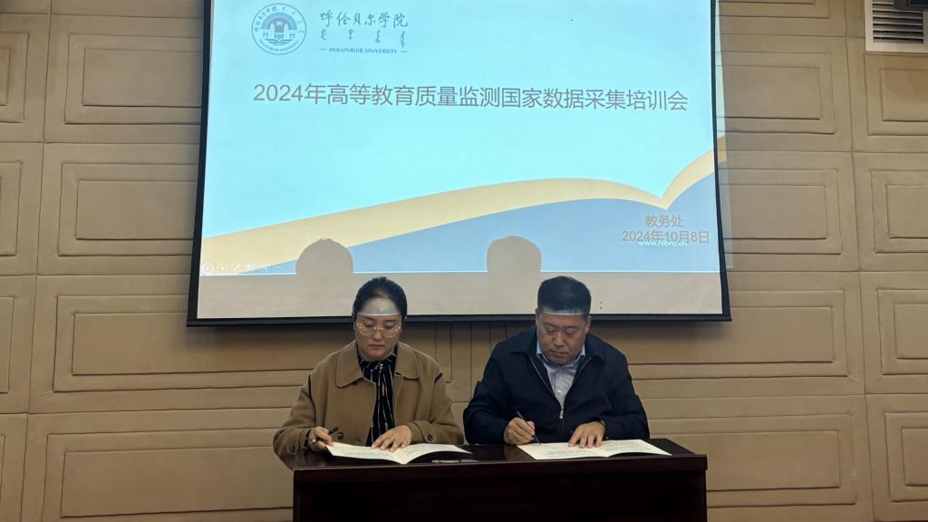 会上,尹立军强调,一要高度重视数据填报工作。本次数据采集工作是本科教育教学审核评估工作的重点内容,各部门、各学院务必要精准掌握数据指标内涵,确保采集和填报的数据真实准确。二要加强协同配合,各相关部门需紧密协作,有效沟通,确保数据科学合理,全面反映学校的办学能力和水平。三要明确责任归属,科学合理规划填报周期和时间点,确保数据的准确录入和严格审核。会议中,职能部门、二级学院负责人代表与尹立军副校长代表学校共同签署了《bat365中文官方网站2024年高等教育质量监测国家数据平台数据采集工作责任书》,进一步明确了填报任务与责任分工。