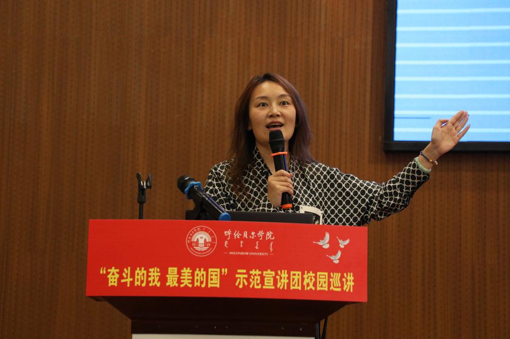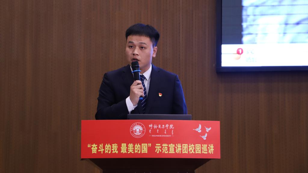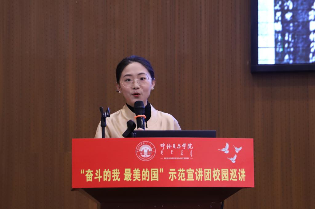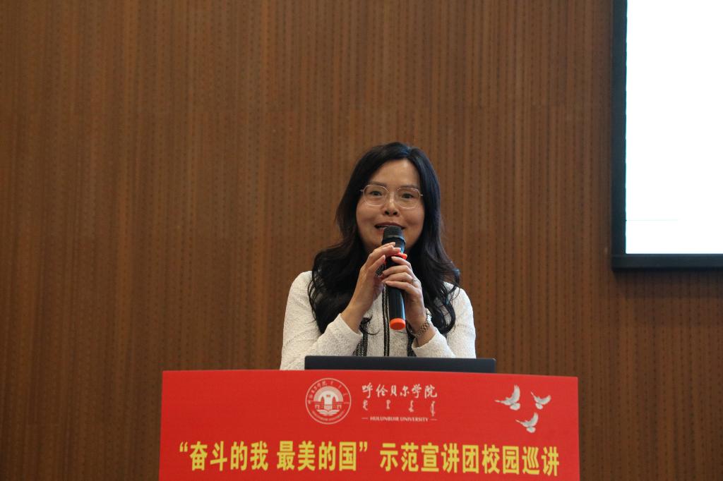 10月11日上午,全区“奋斗的我 最美的国”示范宣讲团第三小分队走进bat365中文官方网站为师生作专题宣讲。bat365中文官方网站党委副书记张宏天及bat365中文官方网站、呼伦贝尔职业技术学院的400余名师生代表聆听宣讲会。宣讲会由党委宣传部副部长敖丽晶主持。